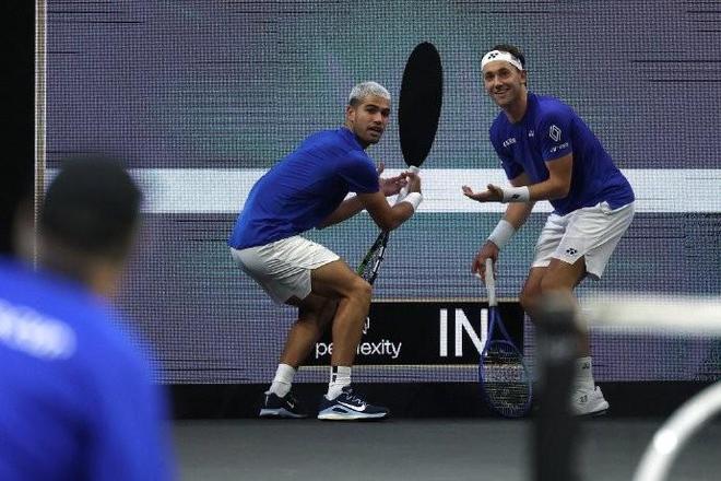 6、正在进行中的拉沃尔杯,是两人的首次联手面对世界联队的两位名将奎雷伊索克,首盘比赛,费德勒和纳达尔在关键分上表现突出。